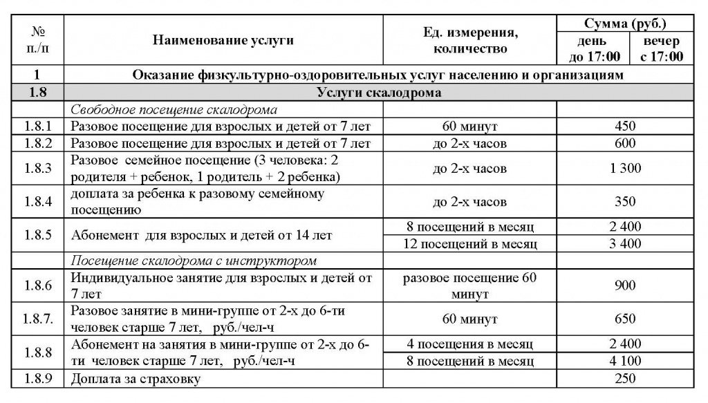 Тарифы на посещение скалодрома