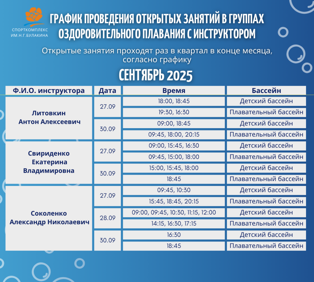 График проведения открытых занятий в группах озд. плавания с инструктором
